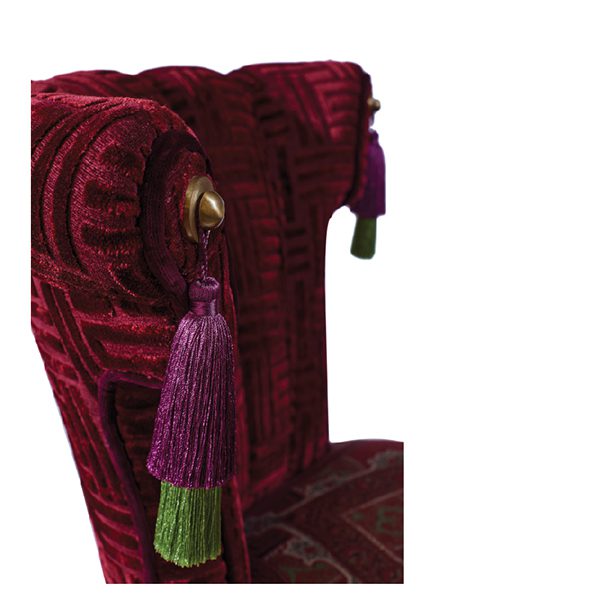 In this unique chair, ETRO HOME Interiors soul manifests itself in an erudite, ironic and surprising way, interpreting the brand sophistication and spirit of innovation with a playful and extravagant twist with the initial letter of the ETRO logo and the paisley fabric on the seat creates a playful combination of elements and colors, vibrant red, pitching the allure of Christmas charm, cheerful tassels of Christmas ornament illuminating your dining table a little brighter and resonating within your soul a little louder.