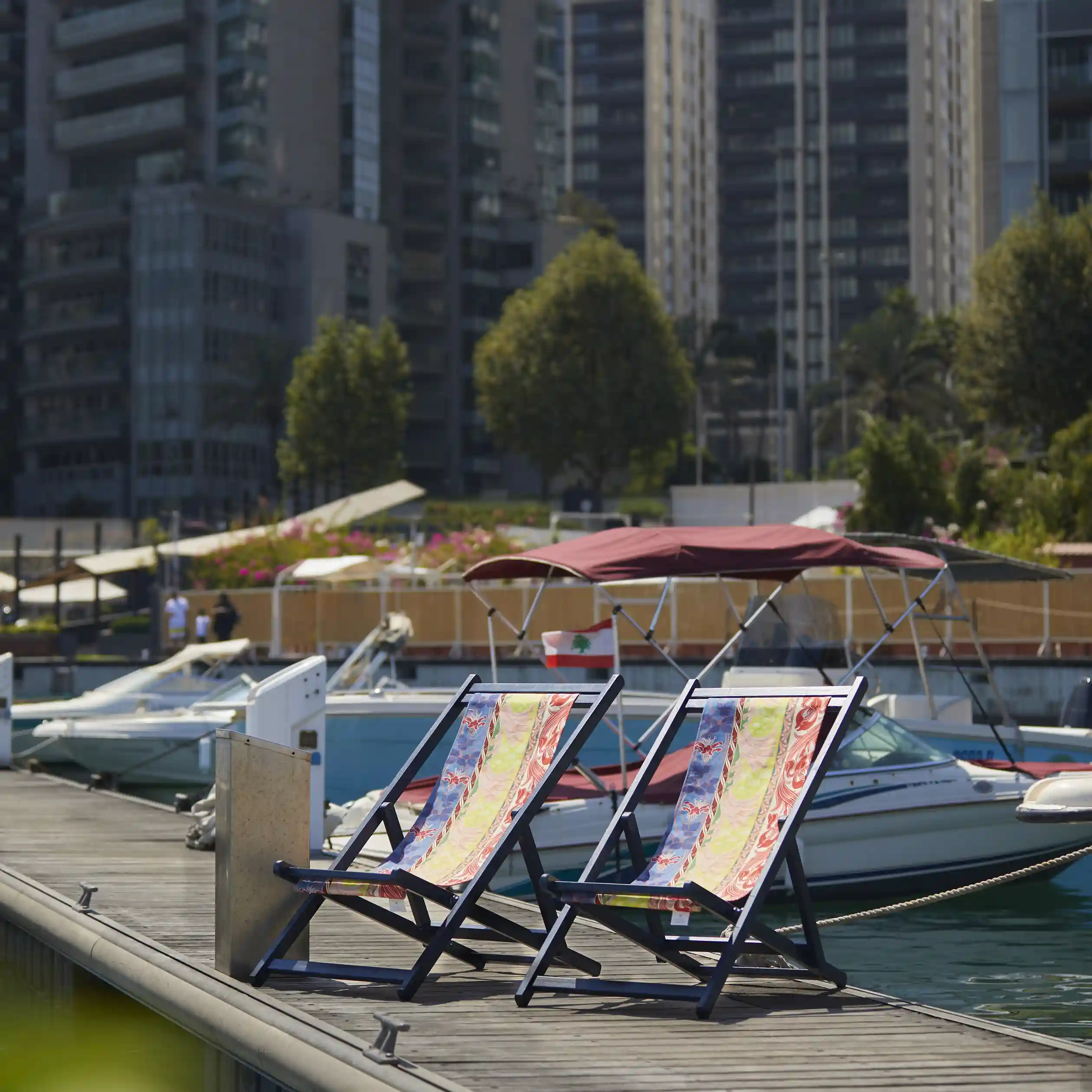 As we strolled along the bay, taking in the lively atmosphere and the stunning marina with Le Yacht Club in the backdrop, we couldn’t help but feel that this setting was a perfect canvas for showcasing something extraordinary. And what could be more fitting than ETRO’s summer collection deck chair, a striking piece that captures the essence of both Italian craftsmanship and Lebanese vibrancy.