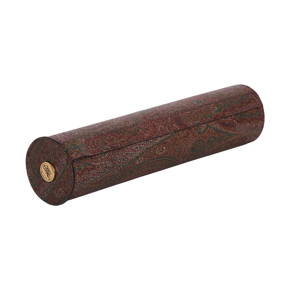 Bring a moment of playful luxury to your space with the exquisite ARNICA Shanghai game (Diam. 6.5 cm, H. 28.5 cm) from ETRO HOME. This striking executive toy transforms a simple classic into a decorative object. The cylindrical case is beautifully wrapped in the signature Arnica print fabric, protected by a durable PVC coating. Finished with polished calf leather trim and a protective cow leather lining, it is a profound statement of Italian design that belongs on the finest shelf or executive desk.