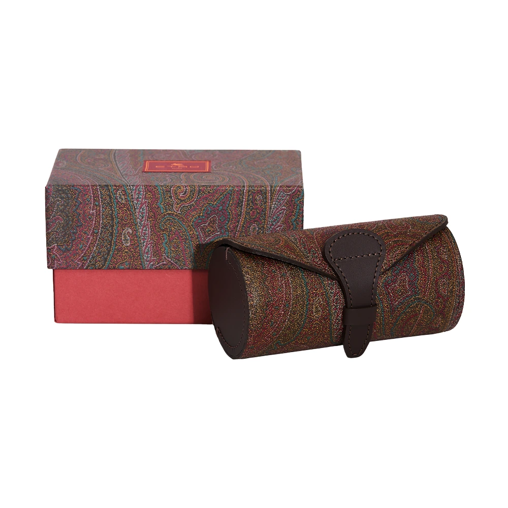 Safeguard your most treasured timepiece with the exquisite ARNICA Watch Tube (16×8 cm) from ETRO HOME. This essential travel piece is wrapped in the signature Arnica print fabric, which is protected by a durable PVC coating. Its structure is finished with a polished calf leather trim, while the interior is lined with soft cow leather for ultimate protection, ensuring your watch rests in unmatched Italian luxury on every journey.
