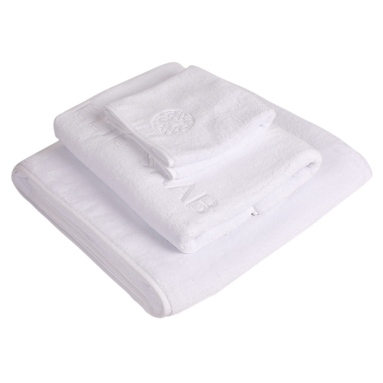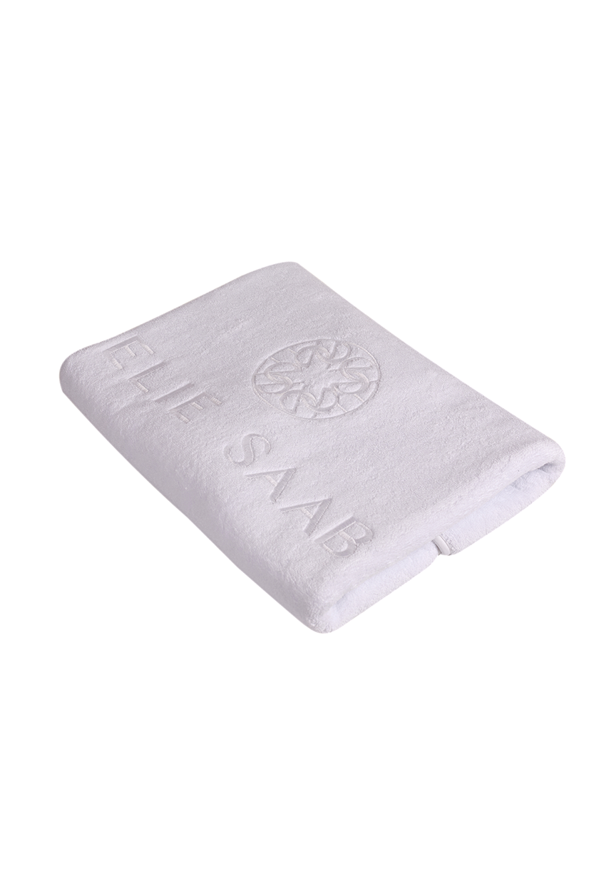 Bath mat crafted from plush Egyptian cotton in a pristine white, featuring the Elie Saab logo subtly embroidered at the center bottom. This refined piece offers a blend of luxurious comfort and elegant design, enhancing any bathroom with a touch of sophistication.