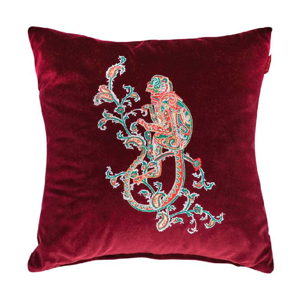 Casseaux cushion from ETRO HOME is embellished with embroidery depicting a monkey and an Indian-inspired floral decoration from ETRO HOME ACCESSORIES. The cushion is embellished by a jacquard back with a Paisley pattern. The cushion from ETRO HOME Accessories adds an elegant touch to your living room or bedroom. Whether you use it as a trendy fashion statement accessory or a sartorial accessory, it’ll add an elegant ambiance to your home.
