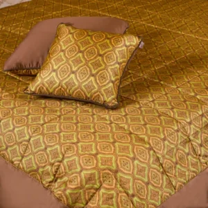 • Features: Printed and plain cotton satin, chain embroidery, quilted finish