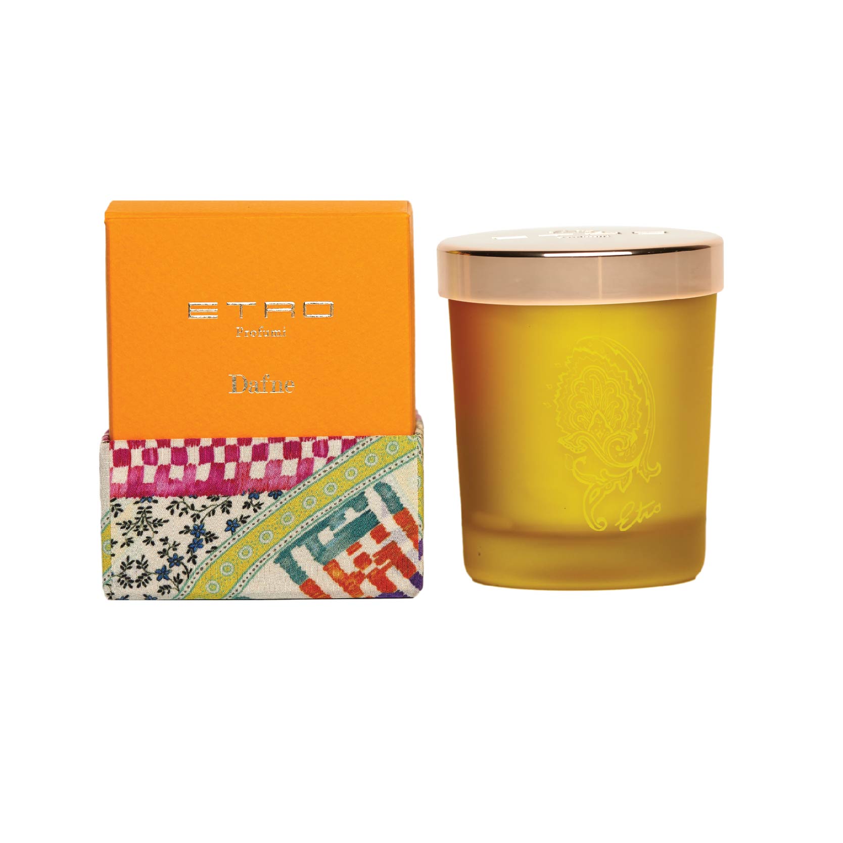 ETRO HOME’S Dafne scented candles inspired by the vibrant and fascinating surroundings of a citrus grove, which are brimming with blooms, colors, and flavors, are drawn to by yellow energy.