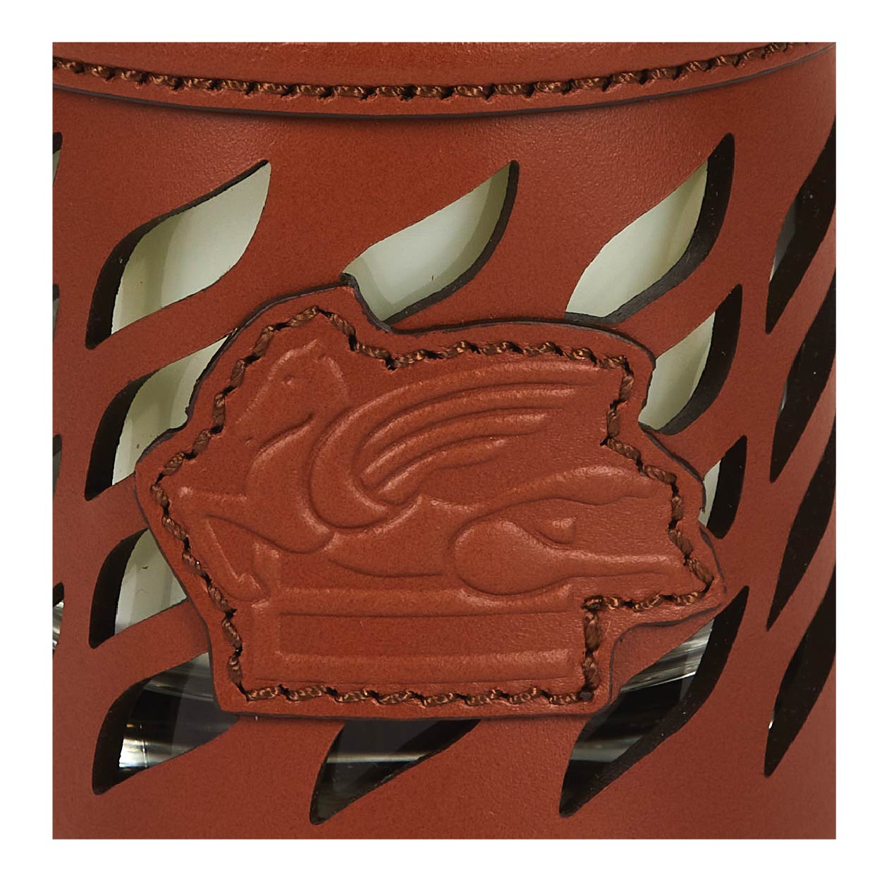 ETRO Home’s Leather-Wrapped Candle. Imbued with unparalleled craftsmanship, each candle is ensconced in supple leather, exuding sophistication and style. Beyond its elegant exterior, the candle emanates a captivating fragrance, casting a warm, inviting glow in any space.
