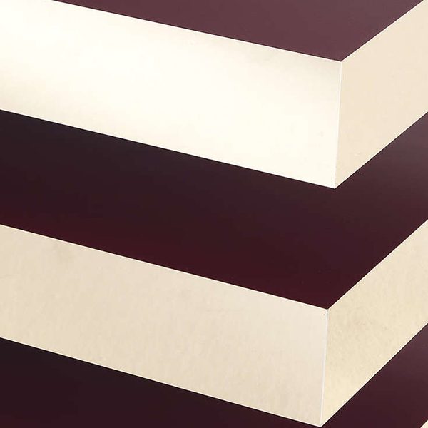 - Red lacquered wood with polished brass detail