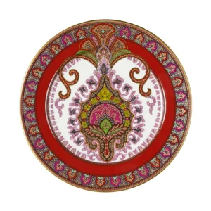 Hand painted “Hayat” fruit plate. Every variation in color and details is the result of the craftsmanship of this article and makes it unique. This fruit plate features a realistic paisley textured surface and a logo stamped base.