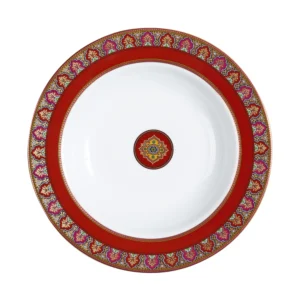 Showcasing a signature motif for the brand, the ETRO Hayat plate lends a classical touch to the globetrotter’s table. The porcelain piece is accented with a vibrant paisley print and gold-tone highlights