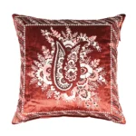 Plain-colored cotton velvet cushion with decorative embroidered Hoya motif and plain-colored back part. Available in blue, red and yellow color.