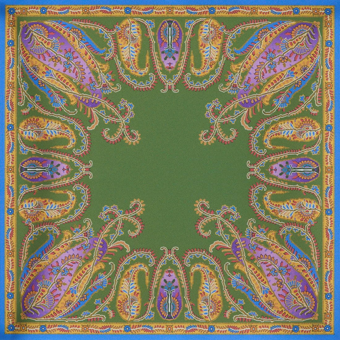 Square tray with slightly wavy raised edges and base embellished with the iconic multicolored Paisley motif.