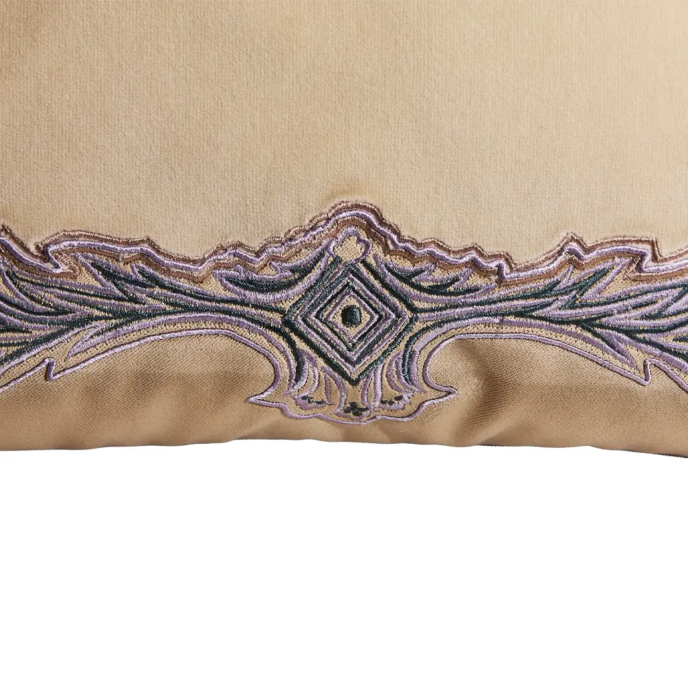 Enrich your sofa or bed with the plush luxury of the KIRI Velvet Embroidered Cushion (45×45 cm) from ETRO HOME. Crafted from a deep, soft velvet, this piece is defined by its meticulous embroidery, which creates a striking, textural motif that instantly elevates any space. The rich color saturation of the velvet combined with the detailed stitching makes this cushion a commanding centerpiece of Italian textile craftsmanship.