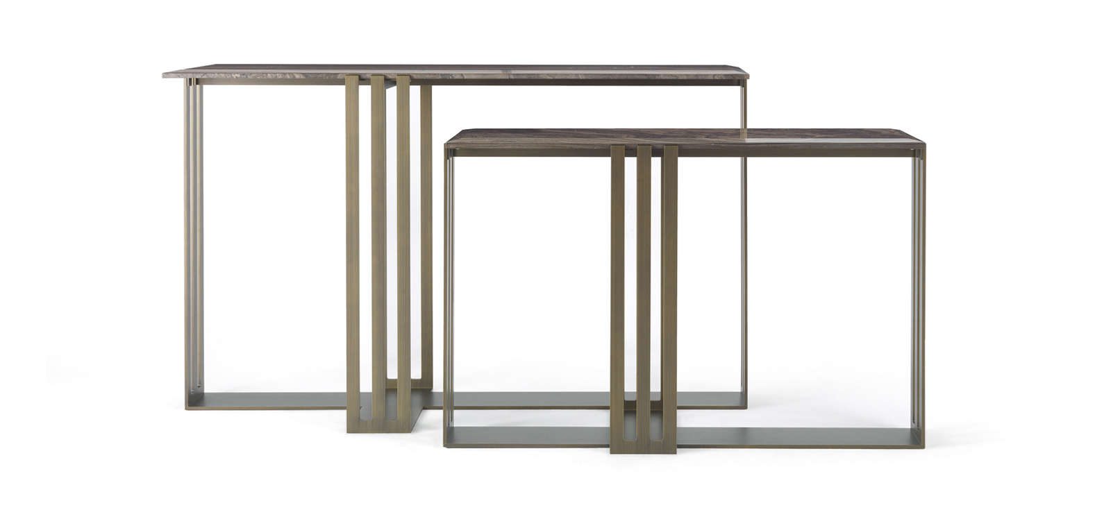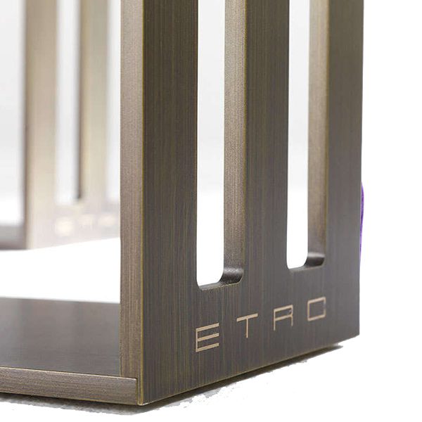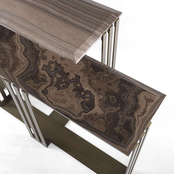 Sculptural lines and refined elegance for the Klee console with top in precious marble and base inspired by the shape of the ETRO’S logo. A scenographic element that characterize the space, lending a refined and eclectic charm.