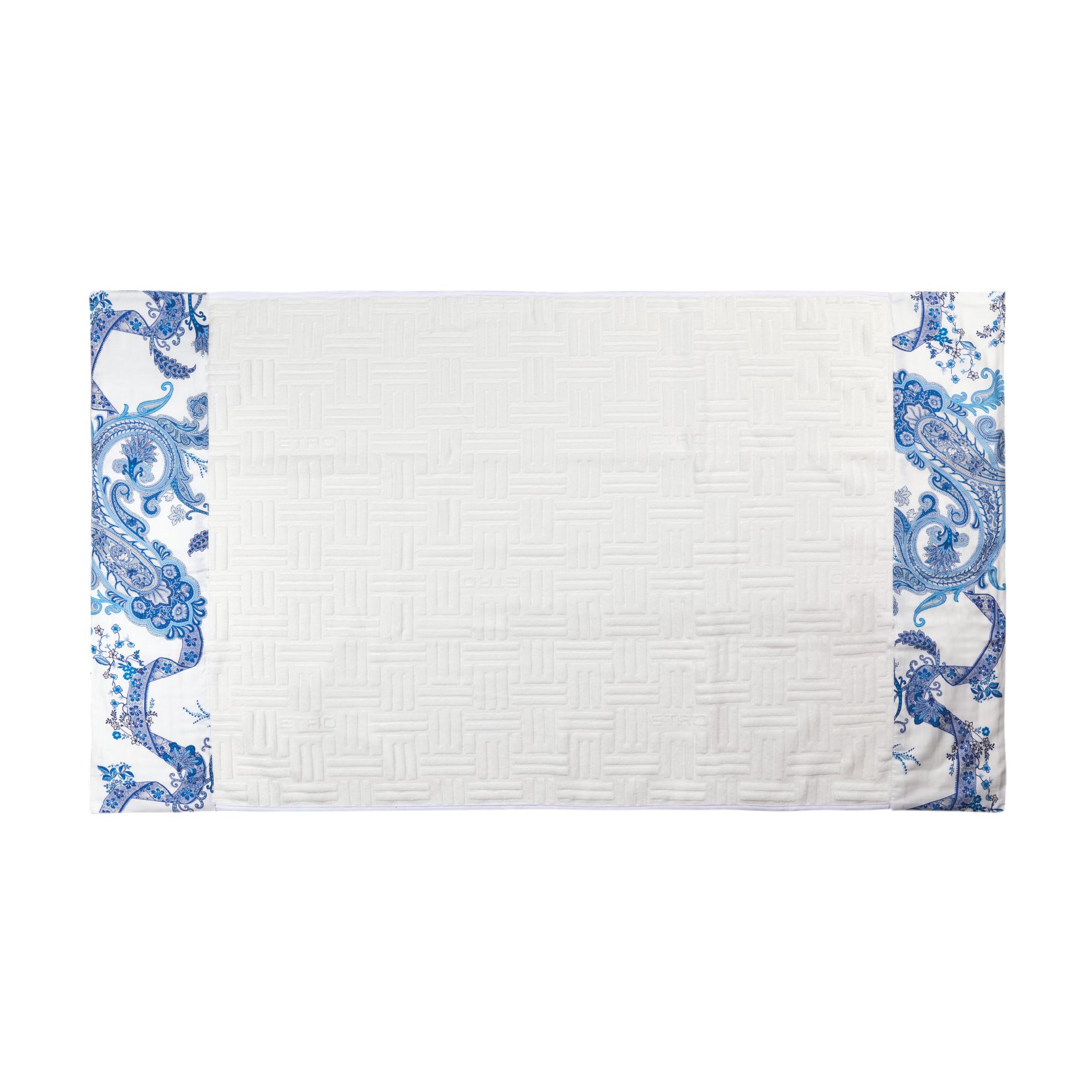 Estoril Loures Towel from ETRO is characterized by its ornate paisley patterning on the edge of the blue “E” monogrammed towel, a signature print for the label. Designed in a muted, tonal color palette. the piece is ideal for adding a touch of playfulness to your bathroom experience.