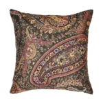 Printed silk cushion with classic decorative Paisley motif. Available in black and red color.