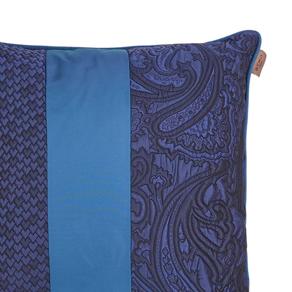 Enhance the enchantment of your space with this Miyake cushion from ETRO. It is ornamented with ETRO’s signature motif, the paisley prints embellished on a blue background.