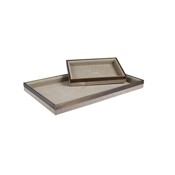 A charming leather tray, perfectly suiting all your gatherings, to serve your guests with elegancy and style. Its bronzed brass borders with protruding ELIE SAAB Maison monogram logo prints all over embellish this unique tray. Available in two sizes and diverse colors.