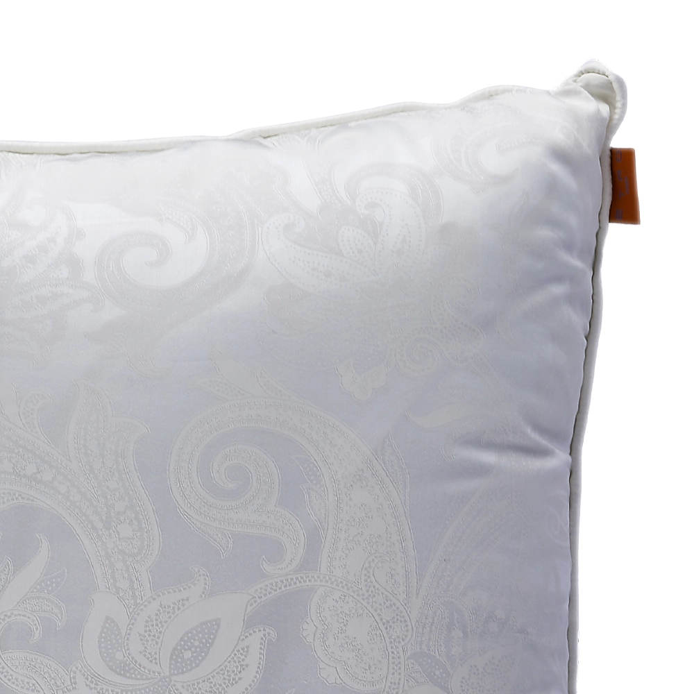 Cotton throw pillow featuring a tonal Paisley rampage pattern, embellished with trim edges and jacquard fabric on the reverse. Finely woven satin in white with a light grey print. The reduced color scheme gives the lush ETRO pattern a particularly elegant touch and can be easily integrated into a light color arrangement. The pillow has a shiny shimmer and impresses with the delicacy of its motif.