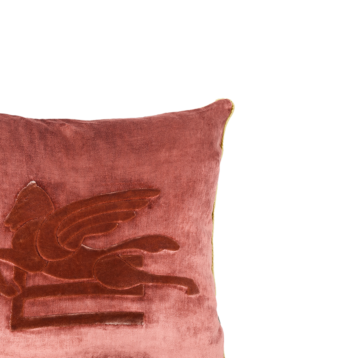 Velvet cushion with contrasting carpet-stitched Pegaso, the brand-signature symbol. Designed with two contrasting sides, both enhanced by an elegant shimmer finish for a refined, luxurious look.