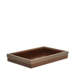 A handmade black leather tray, perfectly suiting all your gatherings, to serve your guests with elegancy and style. Embossed ELIE SAAB Maison monogram logo prints centered in this unique tray with finishing in bronzed metal or polished steel. Available in two sizes and diverse colors.