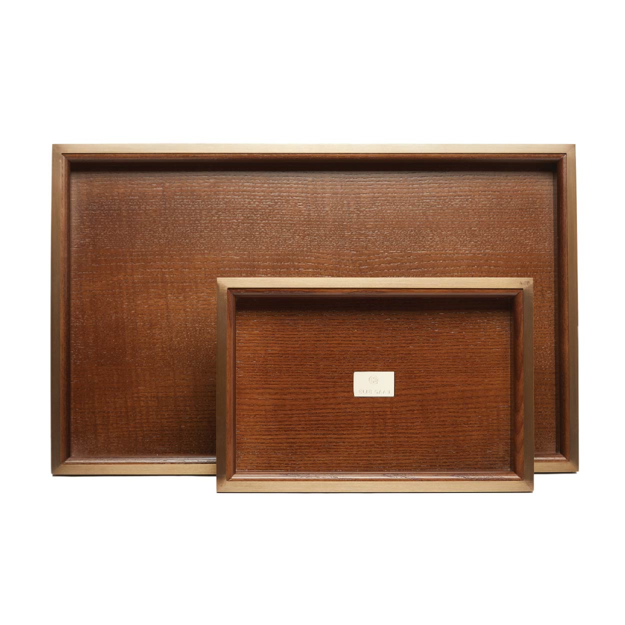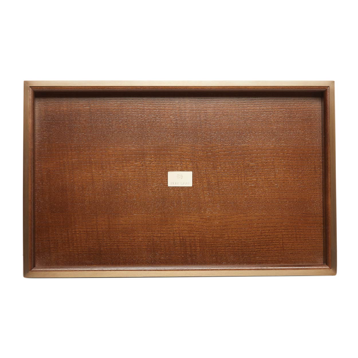 A handmade black leather tray, perfectly suiting all your gatherings, to serve your guests with elegancy and style. Embossed ELIE SAAB Maison monogram logo prints centered in this unique tray with finishing in bronzed metal or polished steel. Available in two sizes and diverse colors.
