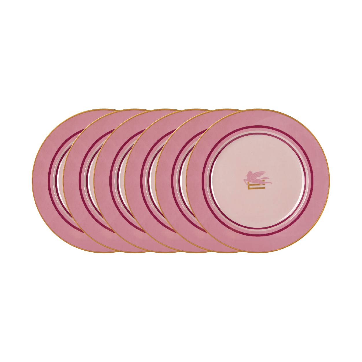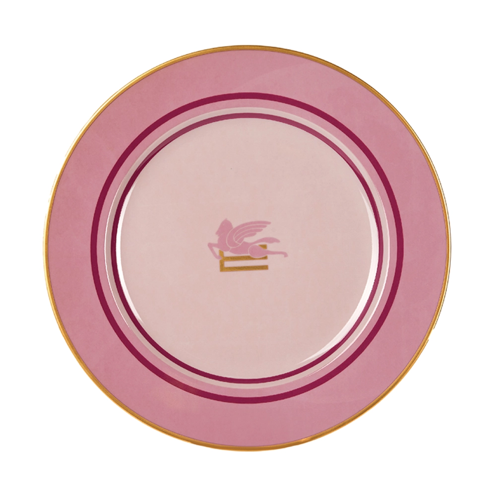 Introducing the PEGASO DECORATIVE PLATES from ETRO Home, where luxury meets functionality in a palette of sophisticated hues. Available in chic pink, elegant grey, and refreshing green, each plate showcases the iconic ETRO logo at its center, symbolizing a hallmark of exquisite taste and style.