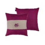 Two-tone cushion in wool with contrasting central band embellished with blanket stitching and contrasting embroidered ETRO logo and iconic Pegaso symbol. The ETRO flag label completes the design.