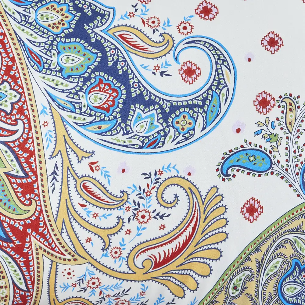 The symbolic paisley pattern, designed with a multicolored hue on an ivory background elevates your interior’s mood and adds a phenomenal style with its various evocative shapes.