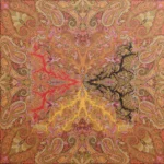 The shawl frame is a print on canvas. Frame in matte wood with black finishing, fabric stretched on canvas from ETRO Home.