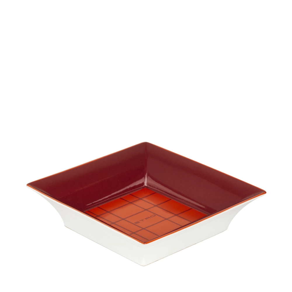 Introducing the TARTAN TRAY from ETRO Home, where artistry meets functionality in a burst of vibrant colors. Available in captivating shades of purple and orange, each tray features a mesmerizing geometric painting that adds a touch of modern sophistication to any setting.