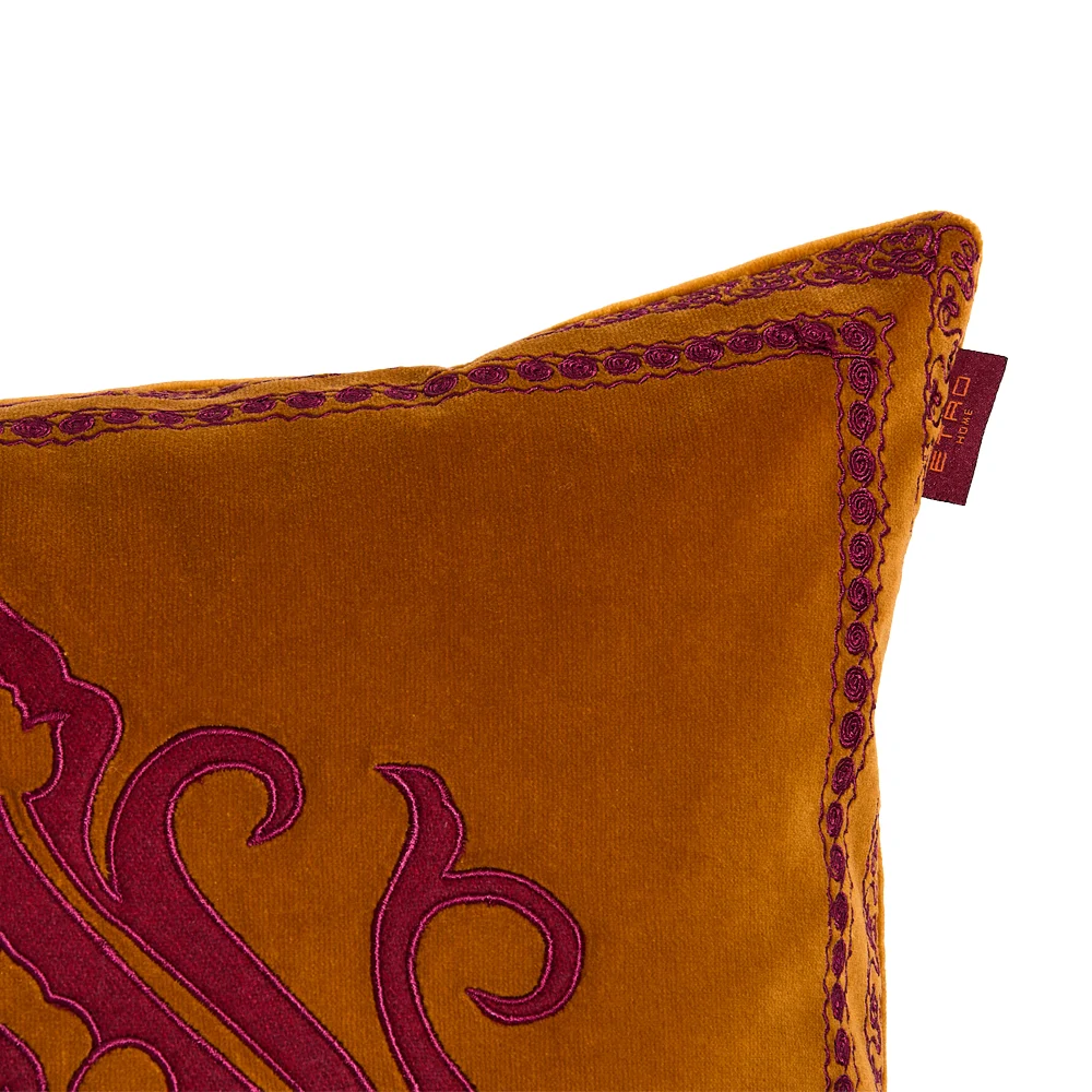 Elevate your seating with the richly textured Velvet Gombo Embroidered Cushion (45×45 cm) from ETRO HOME. The base is crafted from soft, deep 100% cotton velvet, providing a luxe foundation. It is defined by intricate Gombo embroidery, created using a substantial 80% wool and 20% polyamide blend for exceptional texture. This sophisticated mix of materials makes the cushion a stunning, tactile centerpiece.