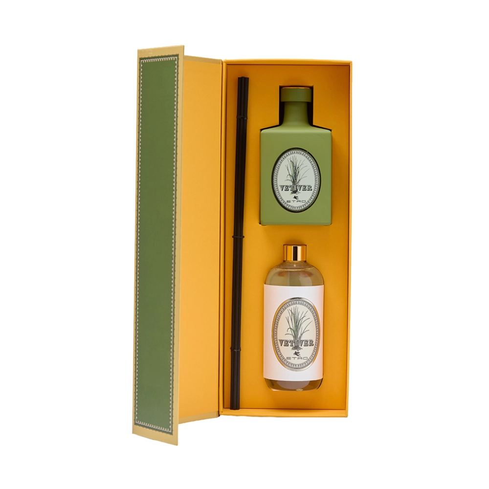 Vetiver exudes a harmonious blend of natural notes and refined accords, combining the intoxicating essence of Haitian Vetiver with deep, woody undertones.